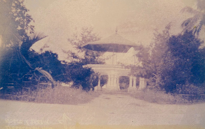En 1932, el parque estaba boscoso y el techo antiguo del segundo piso del kiosko era sostenido sólo por unos tubos