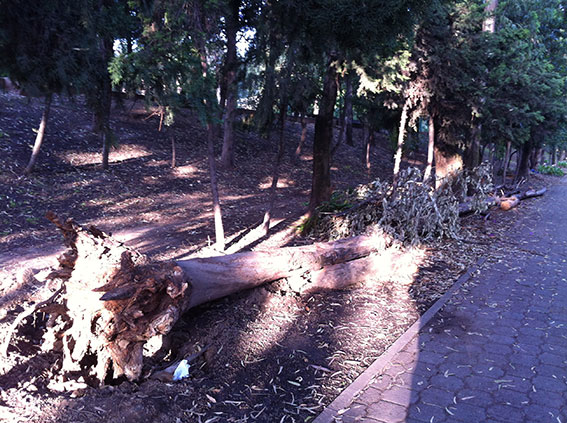 En la primera, describo cómo fue que un árbol al que todos los días abrazaba con pasión Irina se cayó cuando ella dejó de caminar por el lugar y, en consecuencia, lo abandonó.