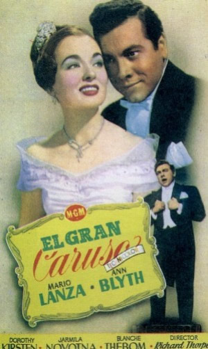 Fue clave en su carrera el concierto del 28 de Agosto de 1947 en el Hollywood Bowl, al lado de Frances Yeend y dirigidos por Eugen Ormandy, al mismo asistió un cazatalentos de la MGM que le propuso un contrato y aquí comenzó la parte más conocida de la vida de Mario Lanza, la que va ligada a sus películas. No obstante, en abril de 1948 fue contratado para dos funciones de “Madame Butterfly” en Nueva Orleans, al lado de la soprano japonesa Tomiko Kazanawa, con tal éxito que lo solicitaron para “La Traviata” en 1949, pero sus compromisos con el cine se lo impidieron. De las 9 películas en que intervino, en 7 fue protagonista, en la primera corista y en “El Príncipe Estudiante” sólo pudo escucharse su voz. Sobre este particular se dijo en su momento que la MGM prescindió de él porque su volumen corporal le impedía vestir los trajes diseñados para el príncipe, pero eso no era verdad porque precisamente en 1952 (año de la preproducción) Lanza ofrecía una silueta más estilizada que en “El Gran Caruso“. Lo que realmente sucedió fue que Curtis Bernhardt, el director propuesto, asistió a las grabaciones de los playbacks y no estuvo de acuerdo con el énfasis de Lanza en una canción, éste pidió un nuevo director y la MGM optó por despedir al cantante. Lo curioso del caso es que cuando se comenzó a rodar “El Príncipe Estudiante”, en 1954, la MGM ya no contaba con Bernhardt y propuso a Richard Thorpe, con quien Lanza tuvo una magnífica relación durante la filmación de “El Gran Caruso.